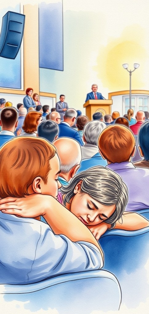 “The key is to keep it dull,” Faulkner explained. “If you over-energize the crowd, you risk waking them up. But when you hit that perfect monotone pitch, like you’re reading the phone book, they’re out like a light. You can literally hear the snoring, it’s beautiful.”