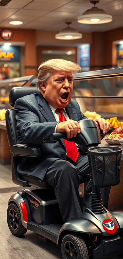 Where Roosevelt believed in the dignity of hard work and rugged individualism, Trump has perfected the art of looking down at a McDonald’s burger as though it’s the pinnacle of American achievement. If Roosevelt’s energy could power a city, Trump’s is more akin to that of a person who uses a rascal scooter to get to the buffet.
