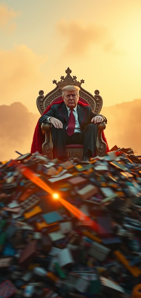 Once upon a time, in a world not too different from our own, there was a man whose name we shall not use. Instead we will refer to him as the title he was eventually given and is now remembered for all time: The Dumpster King. He was born into a life of wealth and privilege, inheriting everything from a father who was known across the land for his cruelty, bigotry and malice. His father, a man who wandered the world with hatred in his heart and disdain for all who were “beneath” him, left The Dumpster King a fortune built on suffering, deceit, and broken promises. Yet, The Dumpster King was not bothered by the bloodstains on his inheritance. He never questioned how he came to own what he did. All that mattered to him was that it was his.