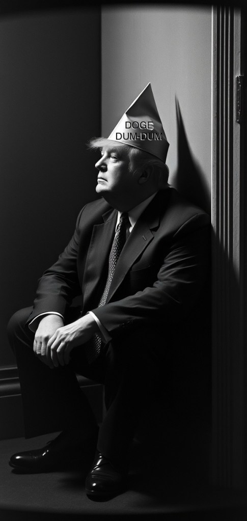 The evening took a brief pause when Vice President JD Vance entered the room and expressed his shock, telling the duo, “That’s not exactly what I had in mind when I said we should preserve the Constitution.” Musk, unperturbed, offered him a bite, which Vance, excited to be included, rushed over and began nibbling like a malnourished rat. Trump, however, was not amused and shouted to his Number 2, “Get back in your box, Box Boy!” At which point, Little JD scurried to a corner, where there was an actual box for him to crawl in and remain out of view public view.