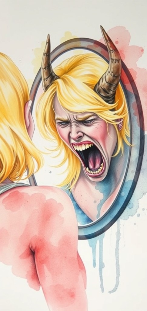 “It’s like she just snapped,” said the aide. “She was getting more and more worked up about ‘the invasion,’ and then she looked in the mirror, and that’s when it happened. She must have thought her reflection was some sort of immigrant threat.” Another aide standing nearby added, “Or, a demon. Probably saw that demon inside her.”